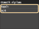 <Otomatik Algılama> öğelerini seçin.