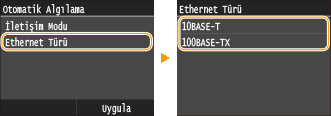 <10BASE-T> veya <100BASE-TX> öğesine dokunun.![]() |