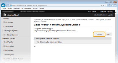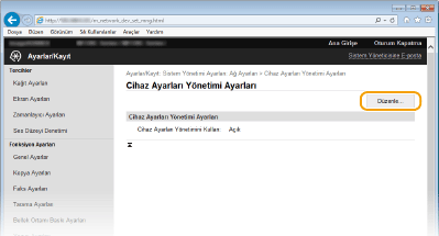 [Cihaz Ayarları Yönetimi Ayarları] öğesini tıklatın.