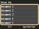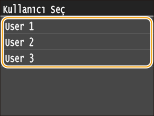 İki veya daha fazla kullanıcının güvenli belgesi bellekte tutuluyorsa, <Dosya Seç> ekranından önce <Kullanıcı Seç> ekranı görüntülenir. Kullanıcı adınızı seçin.