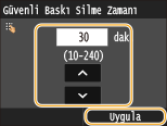 Makinenin güvenli belgeleri ne kadar süre tutacağını belirtin ve <Uygula> öğesine dokunun.