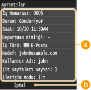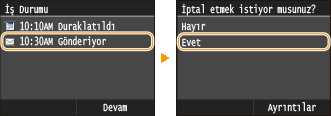 tuşuna basın. Gönderme durumunu denetledikten sonra da belge göndermeyi iptal edebilirsiniz.