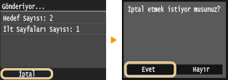 tuşuna bastıktan hemen sonra belge gönderme işlemini iptal etmek isterseniz, ekranda <İptal> öğesine dokunun veya