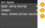 Taranan belgeler belirtilen dosya biçimlerine dönüştürülür. Bu aşamada dosya sıkıştırma oranını belirtebilirsiniz. <Küçük: Hafıza Önceliği> daha düşük resim kalitesi ile daha küçük dosyalar oluşturmak için sıkıştırma oranını normalden daha yüksek yapar. Öte yandan <Geniş: Görüntü Kalitesi Önceliği> daha yüksek resim kalitesi ile daha büyük dosyalar oluşturmak için sıkıştırma oranını normalden daha düşük yapar.