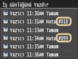 Yazdırma başarılı değilse veya bir faks veya taranan belge gönderemiyor ya da alamıyorsanız veya başka bir hata oluşursa, <Durum Denetleme> ekranında veya bir raporda üç basamaklı sayı (hata kodu) olarak bu hata görüntülenir. Her hata kodu için nedenleri ve çözümleri öğrenmek için aşağıdakileri denetleyin. Rapordaki bilgiler ve hata raporunu yazdırma bilgileri için bkz