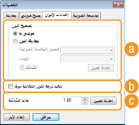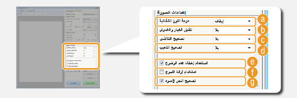 تكوين الإعدادات لتحسين جودة الصورة، مثل تصحيح الخدوش أو الألوان الباهتة بالصورة الفوتوغرافية. وتتوفر هذه الإعدادات في حالة تحديد [ألوان] أو [تدرج الرمادي] لـ [وضع الألوان] (
