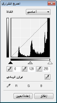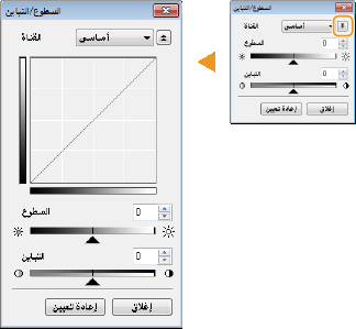 يتم ضبط السطوع والتباين (الفرق بين الأجزاء المضيئة والمعتمة) بالصورة. للضبط مع التحقق من رسم بياني، انقر فوق