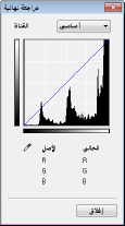 المدرج التكراري هو رسم بياني يوضح توزيع السطوع في الصورة. يمكنك ضبط الصورة أثناء التحقق من صورة المعاينة والمدرج التكراري. حدد جزء الصورة الذي تريده أكثر سطوعًا (أو أكثر إعتامًا) في صورة المعاينة، بحيث يتم ضبط توازن سطوع الصورة الأصلية بشكل تلقائي مع توسط درجة سطوع الجزء المحدد. وبطريقة مماثلة، يمكنك ضبط التوازن مع توسط سطوع درجة اللون المتوسطة.
