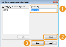 تظهر الشاشة [إضافة/حذف إعدادات منحنى درجة اللون] أو [إضافة/حذف إعدادات الحد المسموح].