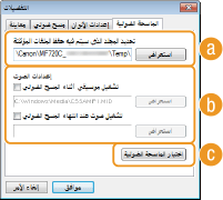 يمكنك تحديد ملفات الموسيقى أو الصوت التي يتم تشغيلها أثناء قيام الجهاز بالمسح الضوئي أو اكتمال عملية المسح الضوئي. انقر فوق [استعراض] لتحديد ملف لتشغيله. تنسيقات الملفات التالية (الامتدادات) مدعومة: