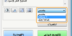 اعرض صورة معاينة، وقم باختيار الإعداد المسجّل في القائمة المنسدلة.
