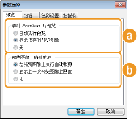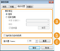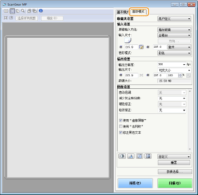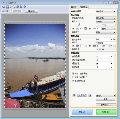 配置使用应用程序扫描文档时应用的设置,以及 ScanGear MF 操作的设置。
