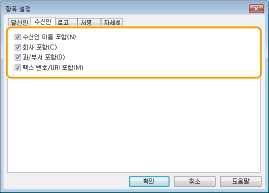 포함할 수신인 항목을 선택하고 정보를 입력합니다. [수신인 선택]/[수신인 입력] 탭(