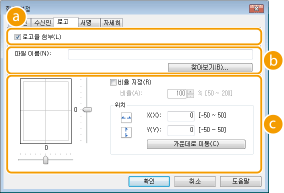 각 설정을 지정합니다. 다음 화면은 [로고] 탭이 선택된 경우의 예를 보여줍니다.