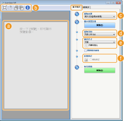 指定設定,然後按一下 [掃描]。這樣可以指定基本設定並掃描。
