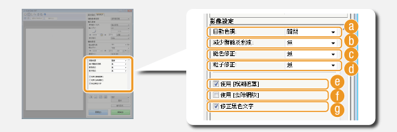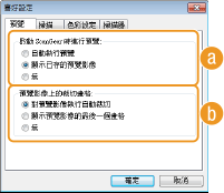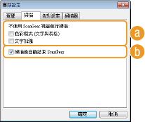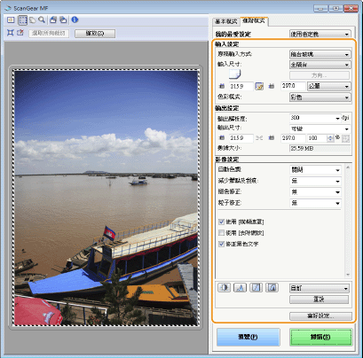 指定透過應用程式掃描文件時套用的設定,以及 ScanGear MF 操作的設定。
