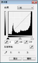 長條圖是顯示影像亮度分佈的圖形。您可以在檢查預覽影像和長條圖時調整影像。在預覽影像中指定您要呈現最亮(或最暗)的影像部份,即可使用指定部份作為平均值自動調整原始影像的亮度平衡。同樣的,您也可以使用中等色調的亮度作為平均值調整平衡。