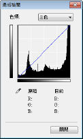 )、長條圖( )及色調曲線設定( )的所有調整結果以數值顯示於色調曲線中。執行色彩設定的最終檢查。 |