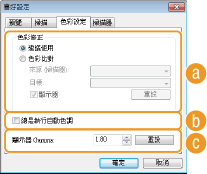指定進階色彩和亮度設定,如色彩比對和 Gamma 修正。