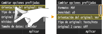 Puede cambiar diversas opciones relacionadas con la pantalla, como la velocidad de desplazamiento o el idioma:
