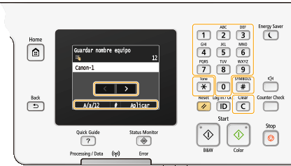 aparezca en la pantalla, podrá conectar un teclado al puerto USB para dispositivos USB de la Parte trasera e introducir el texto con el teclado. Cuando emplee un teclado, podrá seguir utilizando el teclado numérico.