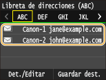Después de registrar los destinos, puede cambiar el contenido de los grupos, como por ejemplo, los nombres, los destinos y los números de marcación codificada.