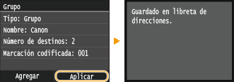 Repita los pasos 8 y 9 hasta que haya registrado todos los destinos que desee registrar y, a continuación, pulse <Aplicar>.