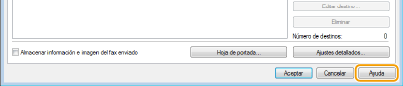 Si hace clic en [Ayuda] en la pantalla del controlador de fax aparecerá la pantalla Ayuda. En esta pantalla puede ver información que no se incluye en el e-Manual, como información sobre las funciones de los controladores, por ejemplo el registro de las opciones utilizadas con mayor frecuencia, y cómo configurar dichas funciones.