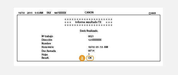 <Informe resultado TX de fax> o <Informe resultado TX de archivo/e-mail>
