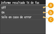 Seleccione esta opción para imprimir un Informe resultado TX solo cuando se produzca un error de envío.