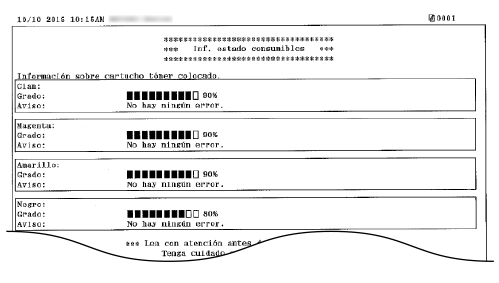 Podrá comprobar el estado de los consumibles instalados en el equipo.