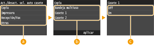 ). La selección de casete de forma automática siempre está habilitada para la impresión en papel introducido desde la ranura de alimentación manual.