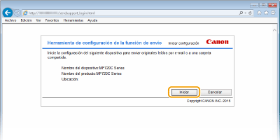 Haga clic en [Iniciar] en la [Herramienta de configuración de las funciones de envío].