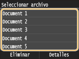 Si se conservan en la memoria documentos protegidos de dos o más usuarios, aparecerá la pantalla <Seleccione usuario> antes que la pantalla <Seleccionar archivo>. Seleccione su nombre de usuario.