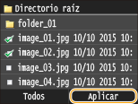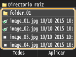 Puede cambiar el método de visualización entre <Detalles> (para nombres de archivos y fechas de modificación) e <Imágenes> (para vistas preliminares). Al previsualizar las imágenes, puede consultar el contenido del archivo antes de seleccionar un archivo para imprimir.