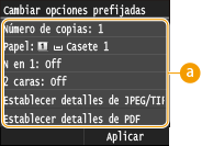 Las opciones predeterminadas son aquellas opciones que aparecen al encender el equipo, o al pulsar