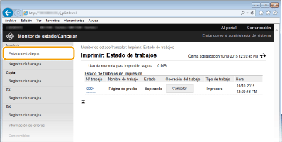 Puede eliminar un trabajo haciendo clic en [Cancelar].