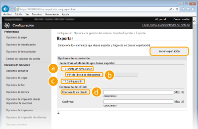 Para exportar datos de la libreta de direcciones, marque la casilla de verificación.