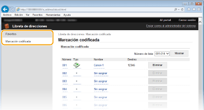 Podrá registrar o editar la libreta de direcciones del equipo utilizando el ordenador. Establezca la carpeta compartida o la dirección del servidor de FTP aquí.