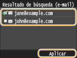 Especifique los criterios de búsqueda utilizando las teclas numéricas, y pulse <Aplicar>.