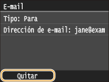 Antes de seleccionar <Conf./editar> en el paso 1, podrá pulsar  /  para alternar los destinos especificados. Visualice el destino que desee eliminar y pulse  .