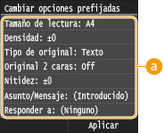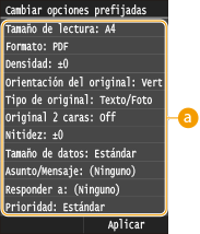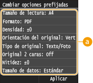 <Cambiar opciones prefijadas>