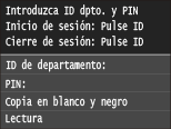 [Autenticar ID/PIN de departamento en el dispositivo]