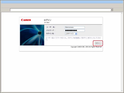 工場出荷時は、ユーザー名は「Administrator」、パスワードは「password」で設定されています。ユーザーの設定については、 「SSO-Hのユーザー情報の設定をする」を参照してください。