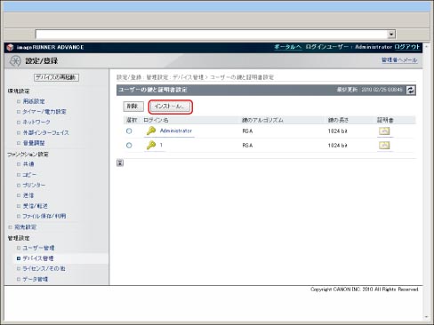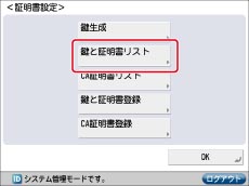 リモートUI上でのユーザーの鍵と証明書リストのインストール