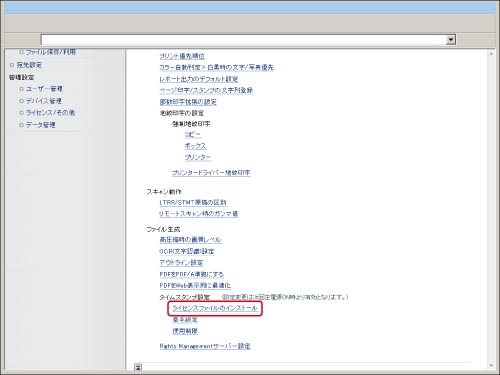 リモートUI上でのタイムスタンプ用のライセンスファイルのインストール
