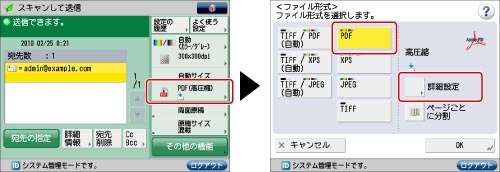 [ファイル形式]→[PDF]を選択→[詳細設定]を押す