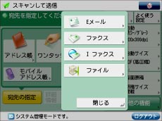 <「スキャンして送信」にファクスを表示>を「ON」にすると、[スキャンして送信]ファンクション内にファクスファンクションが表示されます。