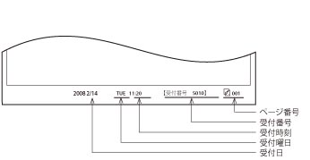 受信ファイルをプリントするとき、受付日、受付曜日、受付時刻、受付番号、ページ番号を、原稿のいちばん下にプリントできます。