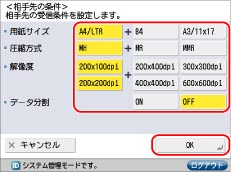 相手先に、分割された受信データを結合する機能があるときは「ON」、ないときは「OFF」にします。